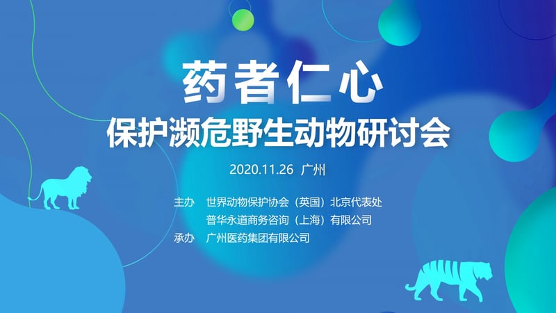 2020年11月26日,世界动物保护协会和普华永道、广药集团联合举办“药者仁心”研讨会,与医药、医疗等领域专家、学者和企业代表共同探讨医药行业参与野生动物保护的相关议题。研讨会上,世界动物保护协会和普华永道发布了《放弃濒危野生动物制品业务对企业的影响》报告。