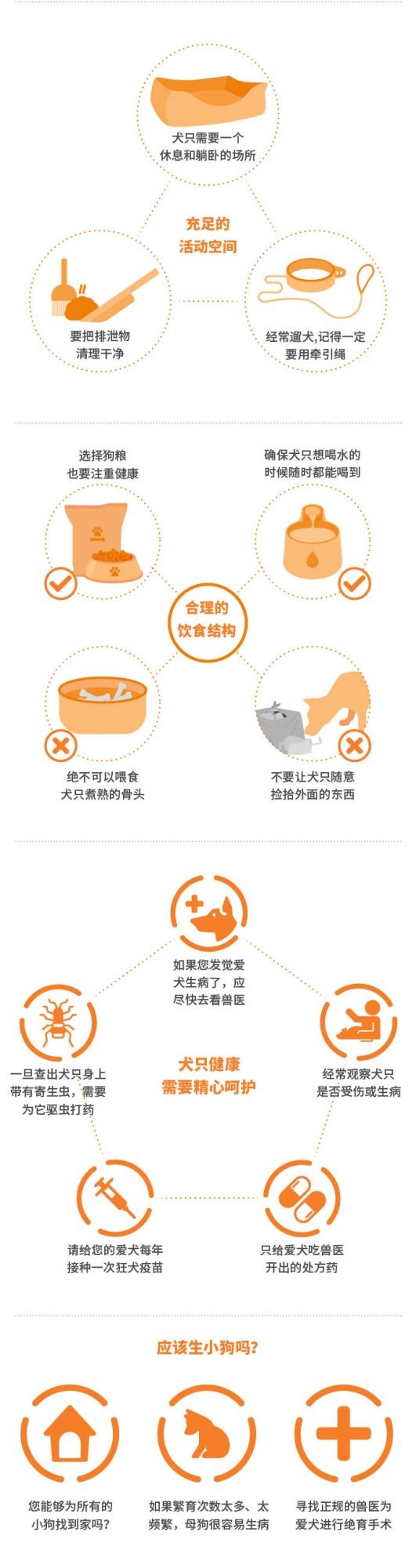养犬需要花费一定时间、精力和资金,需要稳定的家庭环境以及家人的支持。首先,犬主应本着对自己和犬只负责的态度,在养犬方面三思而后行。犬主应充分评估自己和家庭是否满足养犬所需的各项条件,根据所在地的养犬管理规定选择合适的犬只、为犬只登记注册。